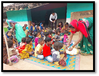 Arrangement of ration and food for the poor children of deprived community at the grassroots level in the backward and hilly areas of Block Harrai of District Chhindwara, in the areas of Milk Project and Pre-School-Nutrition and Education under Jeev Daya Foundation and Satyakam Jankalyan Samiti and Milk distribution work was done in anganwadi and schools of village.