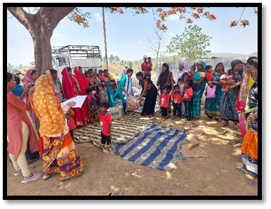Jeev Daya Foundation and Satyakam are giving first priority to the tribals, Dalits, landless, unemployed, marginalized sections of the society and the children and women of those communities who cannot manage two meals a day, who belong to the extremely poor class, who are marginalized or whose socio-economic condition is pathetic. Meetings were conducted with men and women of the community for the milk distribution program for 68 children in villages Muarsani and Tharwa. Information was provided about the serious problem of malnutrition in children, so that the inclination of children towards milk can be increased, because the institute can make parents aware about the protein nutritious diet of children, so that parents bring their children at the time of milk distribution, and they can get milk and biscuits.